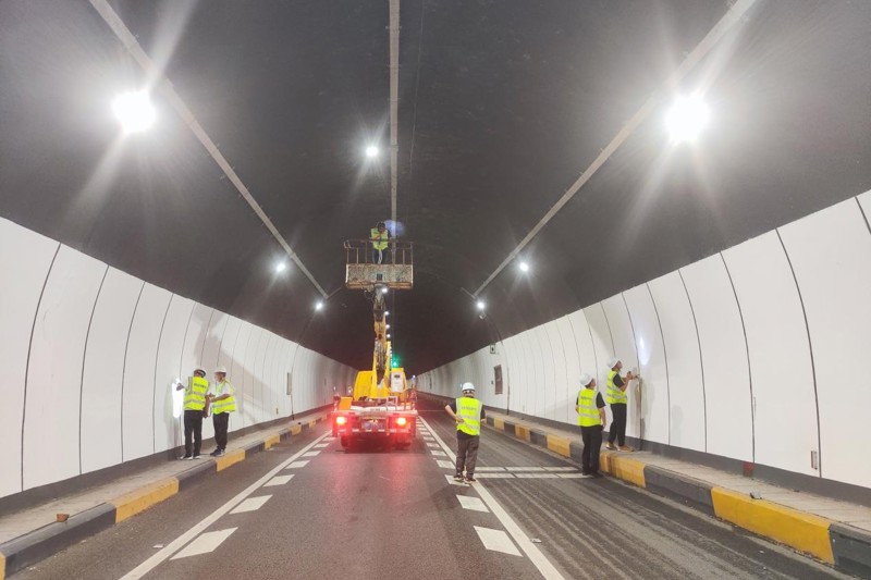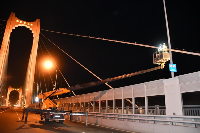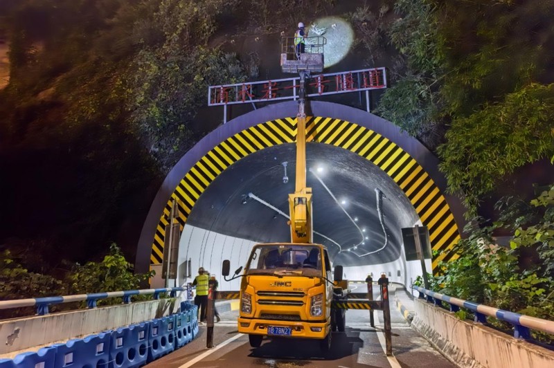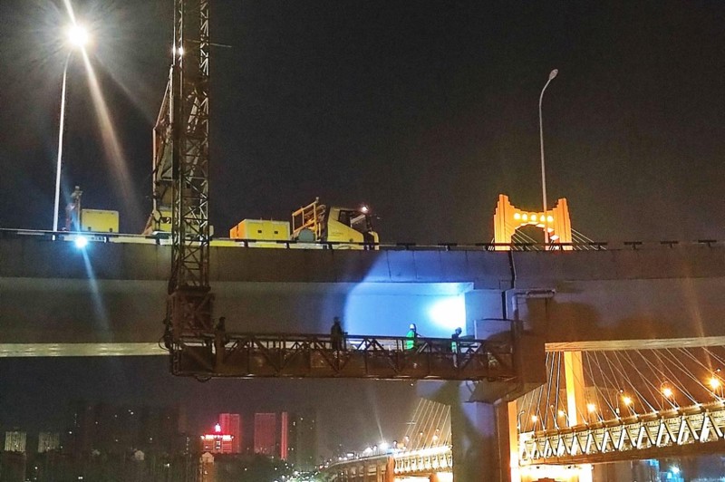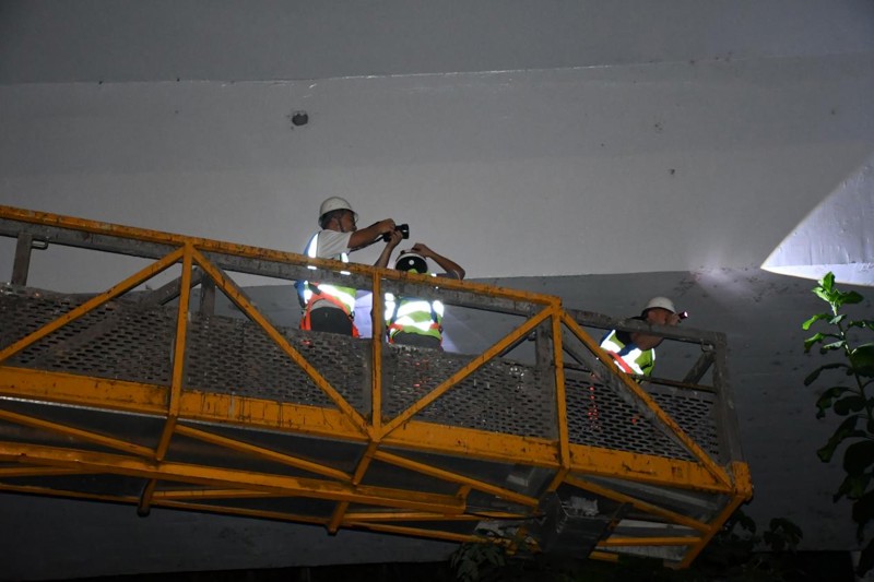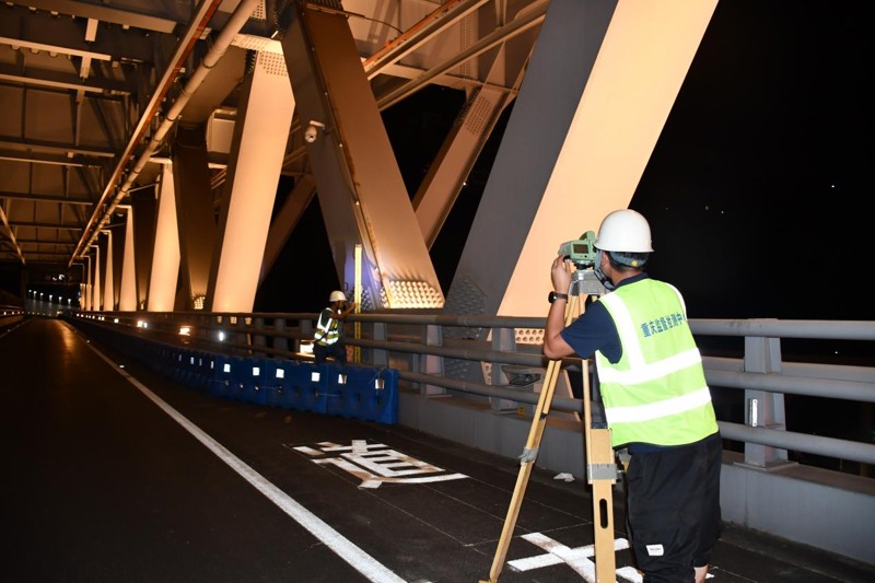 (检测团队在夜间对桥隧进行检测工作 )