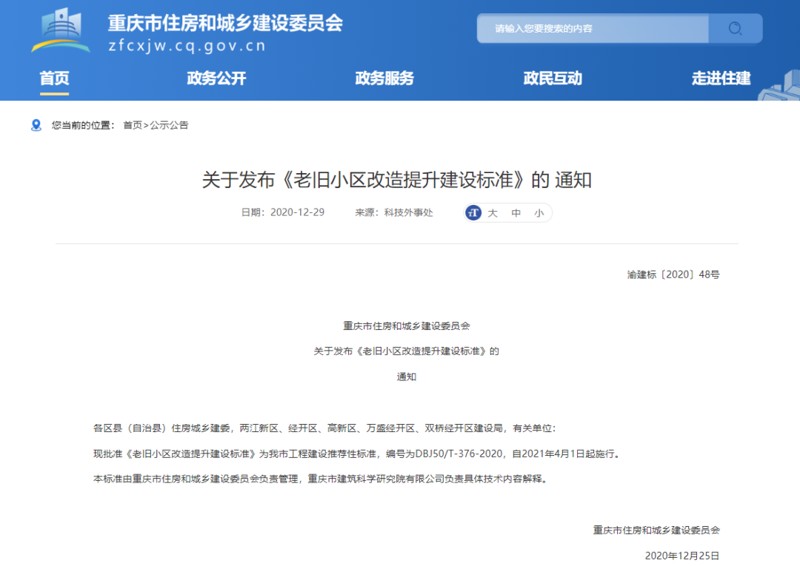 市建科院牵头编制的《老旧小区改造提升建设标准》获市住建委批准发布