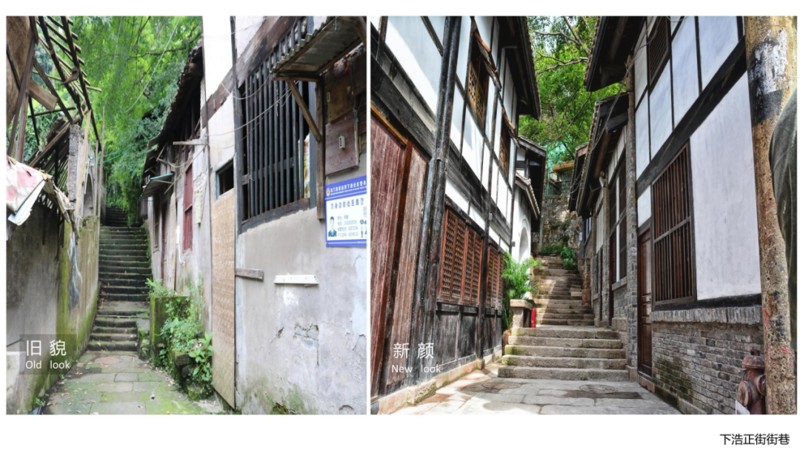 龙门浩老街的建筑依山而建,有着近50米的高低落差,是重庆市最具山地特色的传统历史街区。2017年,重庆市南岸区启动了龙门浩老街的保护与修缮工作。2021年4月,南岸区启动建设拓展区(下浩里)修缮工作,并根据老街历史文化特性进行业态布局,将龙门浩老街打造成兼具历史文化底蕴与现代时尚元素的新街区。